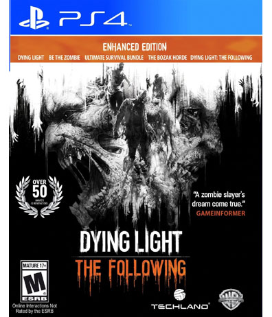 Dying Light: The Following – Enhanced Edition takes parkour-fueled zombie survival to a whole new level. Enjoy the definitive Dying Light experience with the brand-new Legend system, improved visuals, major gameplay enhancements, and more. This package comes with all the available bonus content, including Be the Zombie, Cuisine & Cargo, Ultimate Survivor Bundle, and The Bozak Horde. Last but not least, travel beyond the walls of Harran to discover a vast, dangerous new region in Dying Light: The Following – a massive story-based expansion that brings mysterious characters, deadly new weapons, unexpected quests, and fully customizable and drivable dirt buggies. Features: Enhanced Version of the Game – Dying Light is now bigger, better and scarier than ever before. Enjoy the ultimate zombie experience as you scavenge for supplies, craft weapons, and do anything you can to survive in a city ravaged by the zombie virus. Expanded with Dying Light: The Following – Discover the untold chapter of Kyle Crane’s story thanks to this massive game expansion. Investigate a mysterious cult as you leave the quarantine zone and travel to a seemingly serene countryside – a region bigger than all areas of the original game combined! Drive to Survive – Dying Light: The Following introduces the drivable dirt buggy that you can freely customize and upgrade with special weapons, attachments and decals to create your most deadly weapon yet. All DLCs and Updates – Get all the additional content ever released for Dying Light in one go, including the Be the Zombie multiplayer mode, the Cuisine & Cargo challenge missions, the Ultimate Survivor Bundle, The Bozak Horde game mode, and much more.